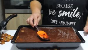 - GlazuraČokoladu, puter i mleko otopite na pari.Mešajte dok ne dobijete sjajnu, homogenu glazuru.Prelijte preko sečenih kocki u tankom sloju.Ostavite da se ohladi i stegne pre služenja.