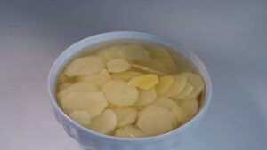 - Priprema povrćaIseći krompir i tikvice na kolutove debljine 3 mm.Pleh obložiti papirom za pečenje, složiti kriške, premazati ih uljem i blago posoliti.Peći na 220 °C oko 15–20 minuta da otpuste vlagu i blago omekšaju.
