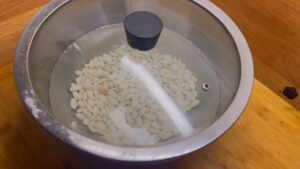 - Potapanje i prvo kuvanjePasulj potopite u hladnu vodu preko noći. Sutradan prospite vodu, sipajte novu, kuvajte 10 minuta i ponovo prospite vodu.